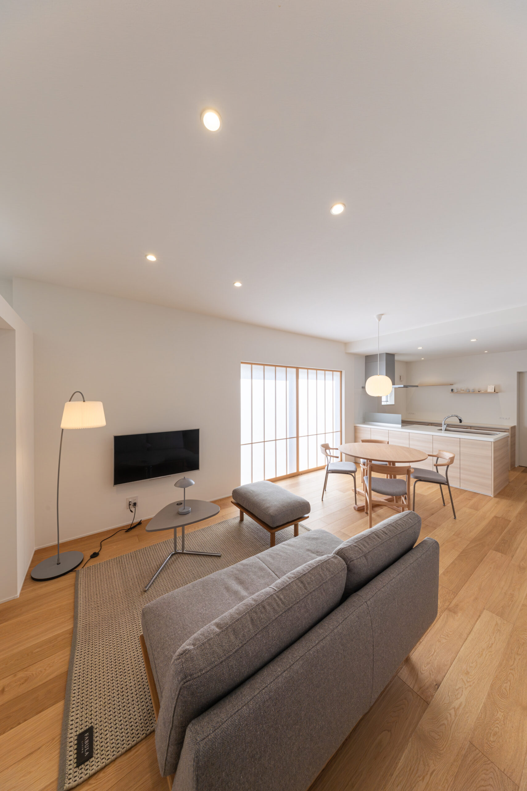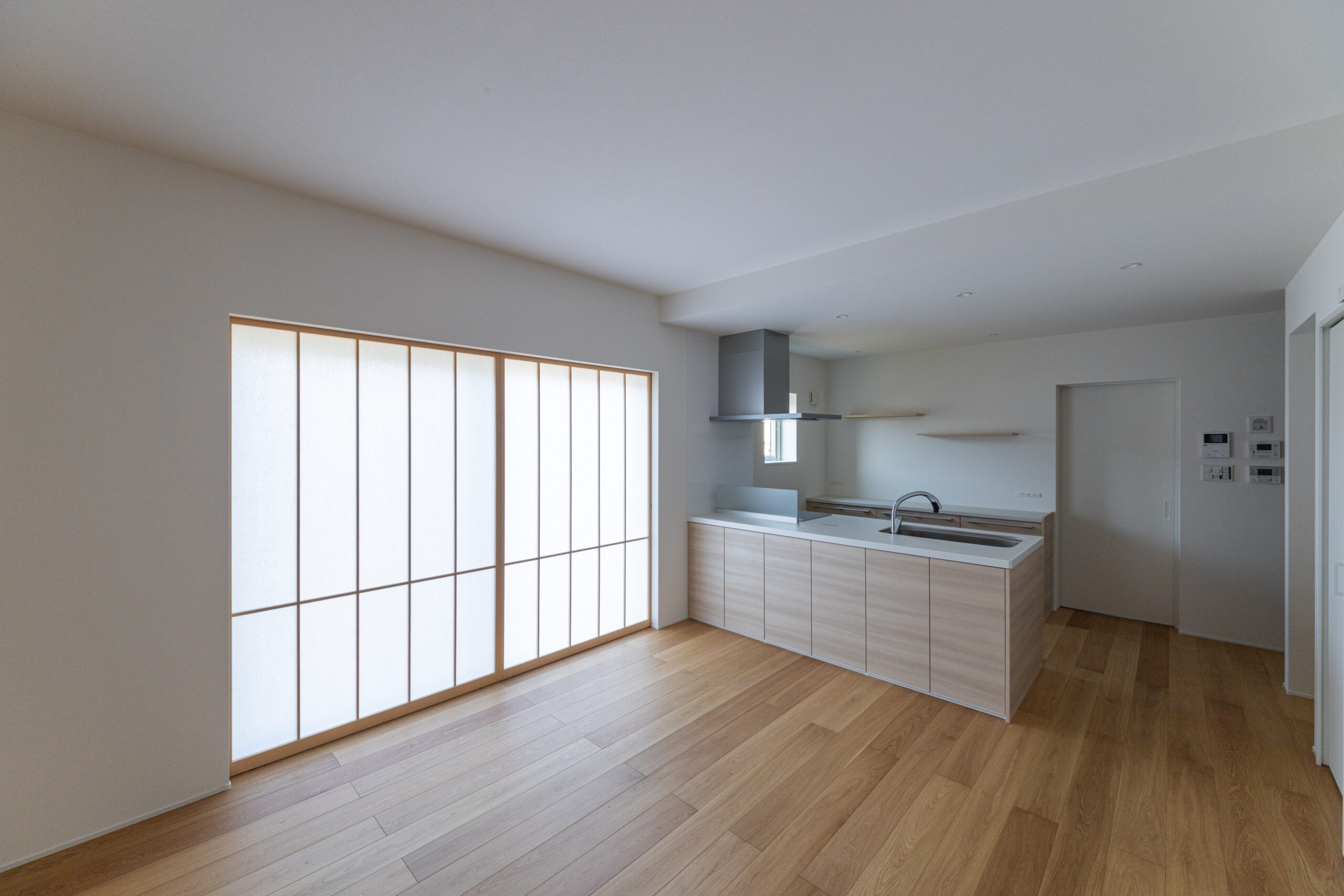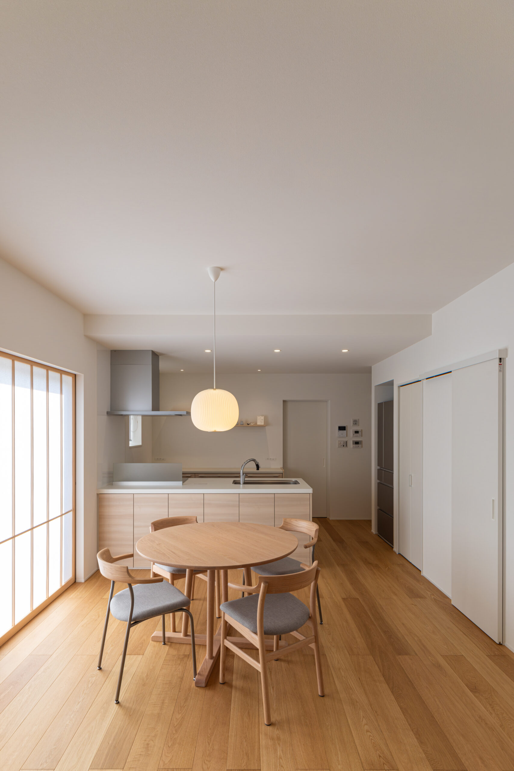 リビングにも大きな両引き込みの障子があり、光を柔らかく拡散してくれます。