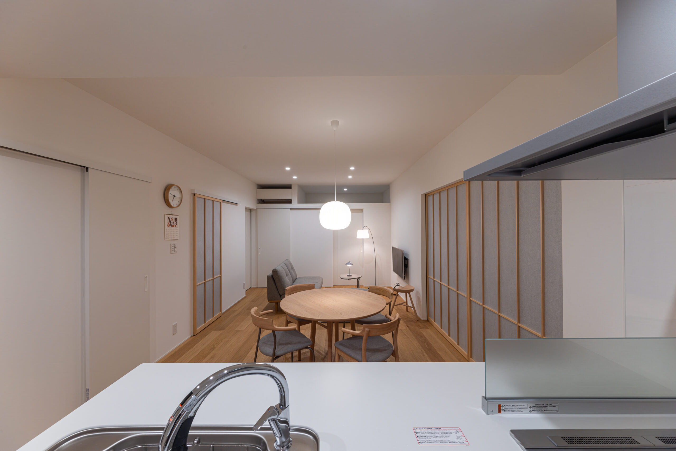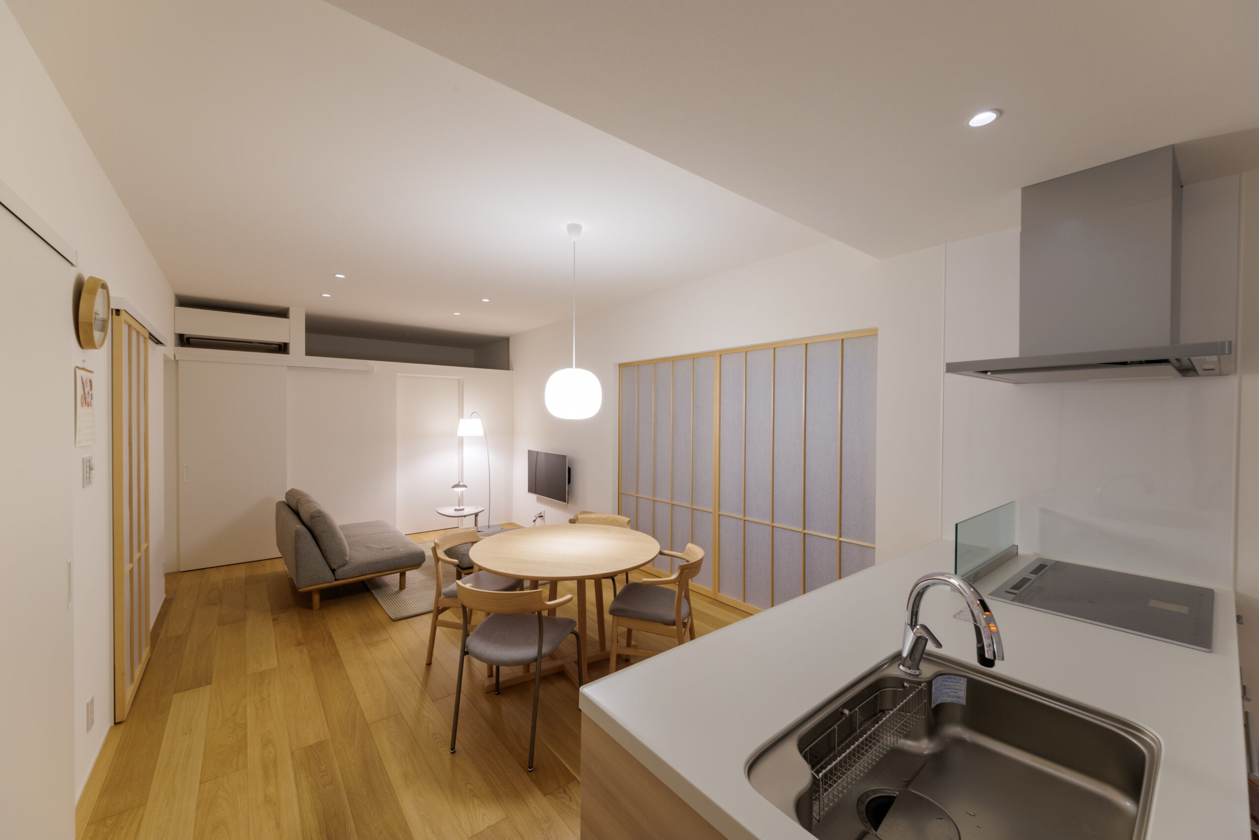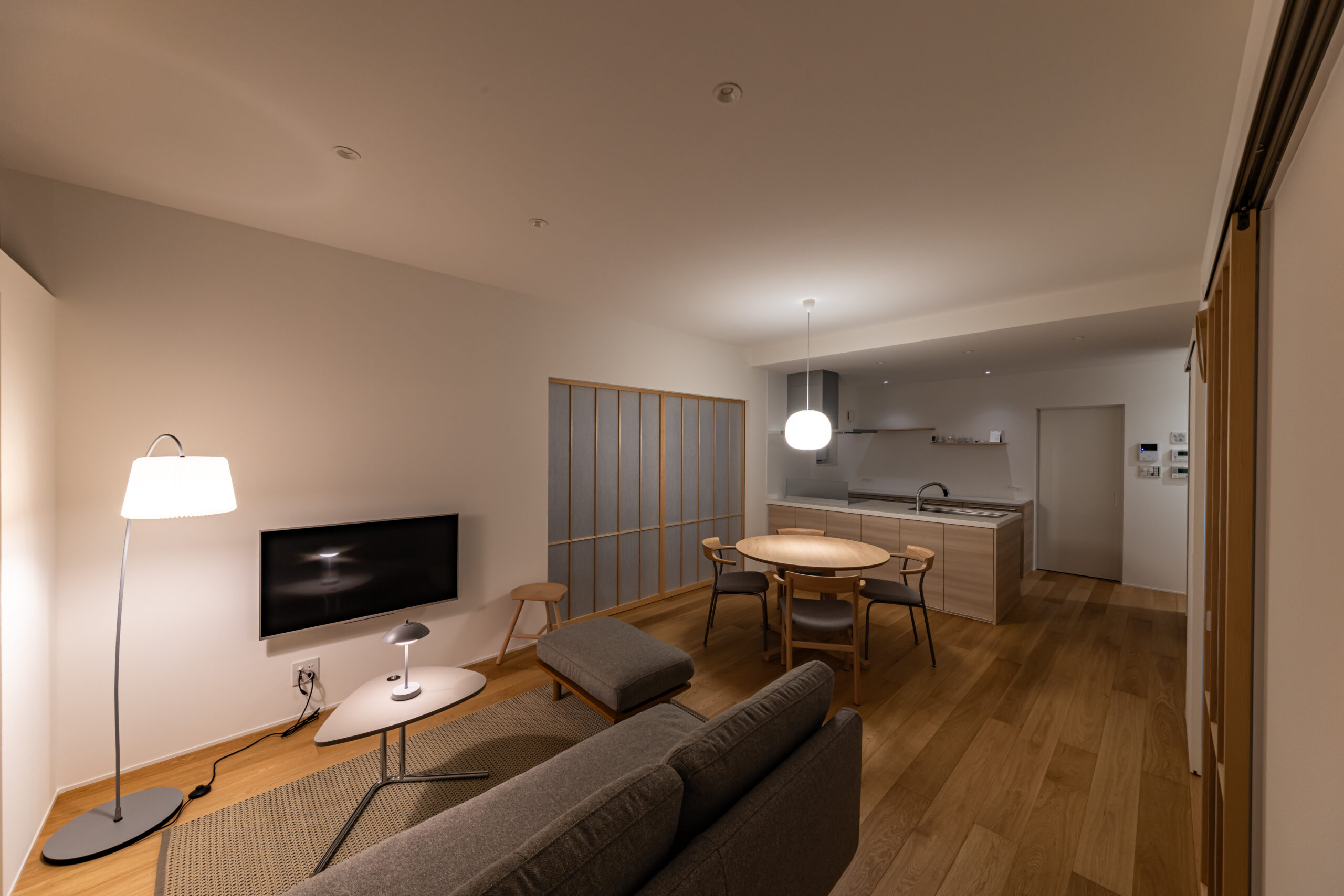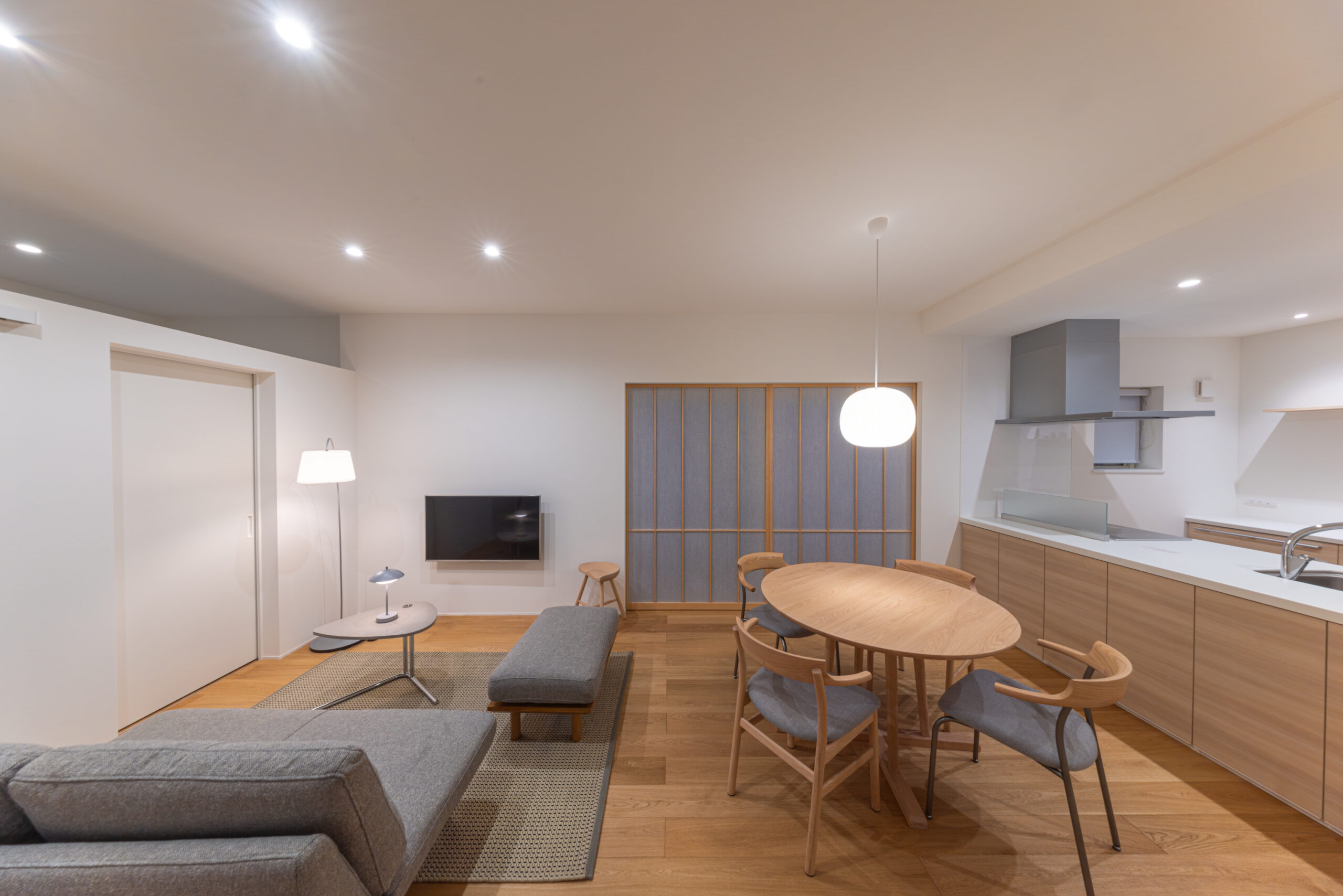 リビングにも大きな両引き込みの障子があり、光を柔らかく拡散してくれます。