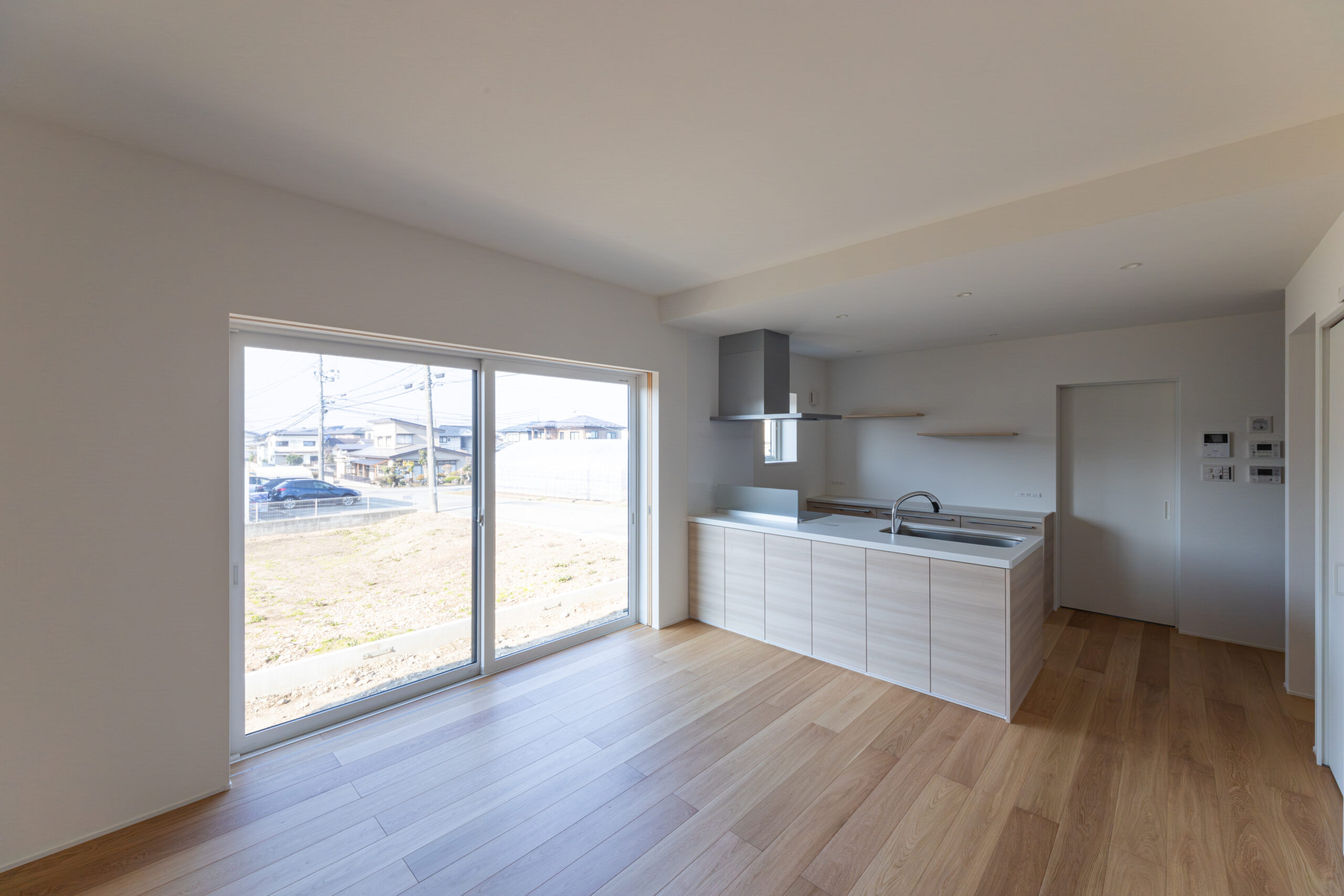 両壁に綺麗に納まり、広い開口が取れます。