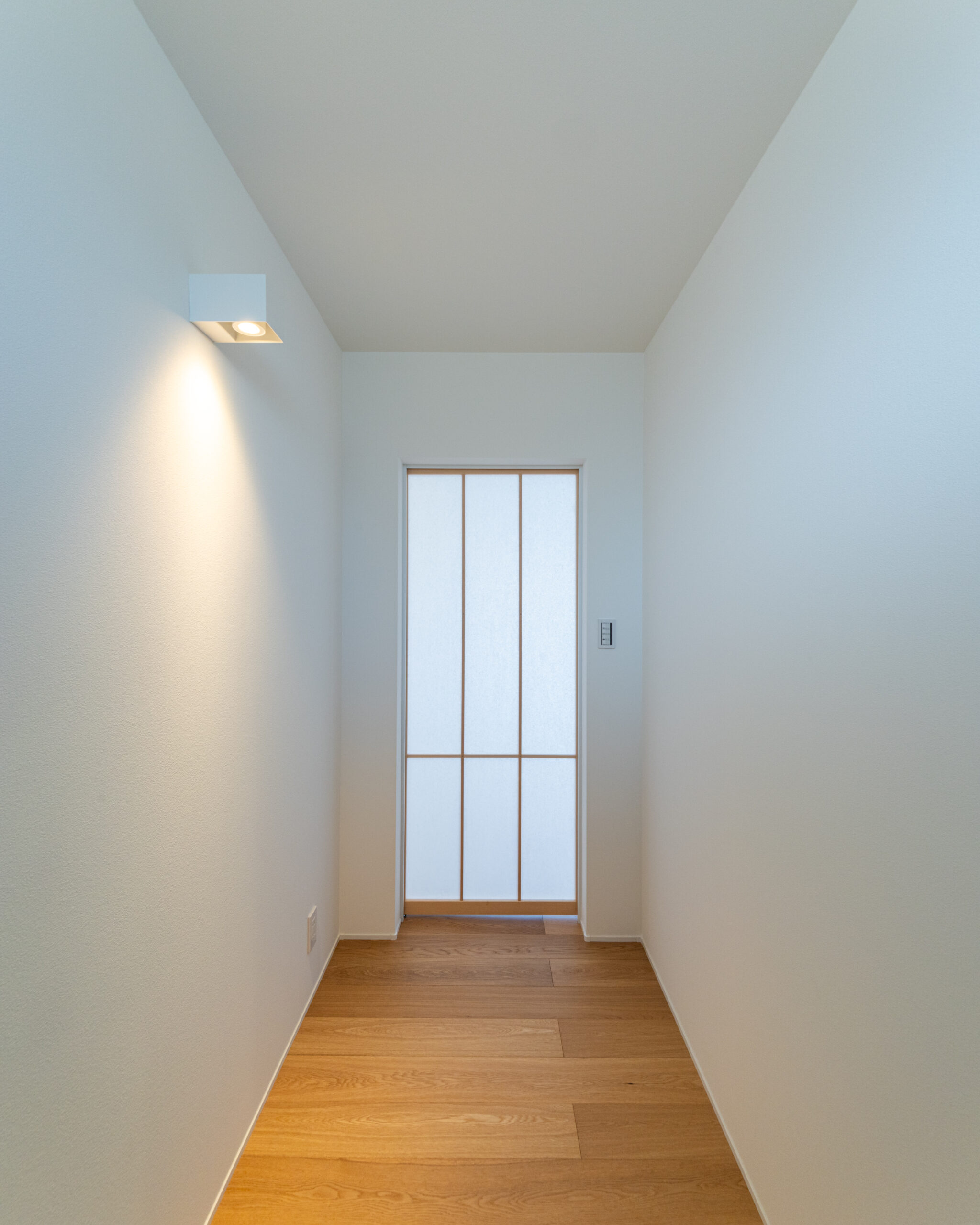 オーダーの格子引き戸から柔らかく光が